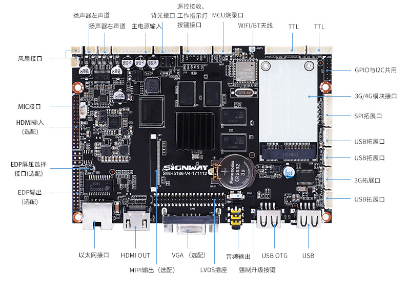 HDMI、 LVDS、VGA/MIPI/EDP(选配)