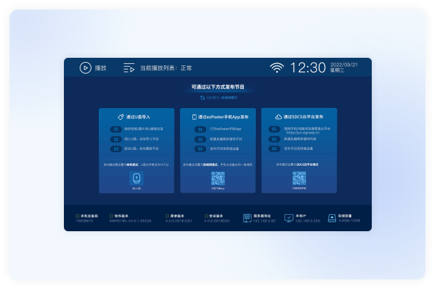 ezPoster是一款高效、便捷、安全、专业的局域网信息发布软件;人人都可轻松实现节目可视化编辑、轻松制作吸睛节目、一键内容即刻上屏;自动寻机绑定,支持终端远程指令发送,可广泛应用在广告传媒、社区办公楼、政府企业、餐饮娱乐、商超酒店、景区交通、文体场馆、教育金融、医疗零售等场景。