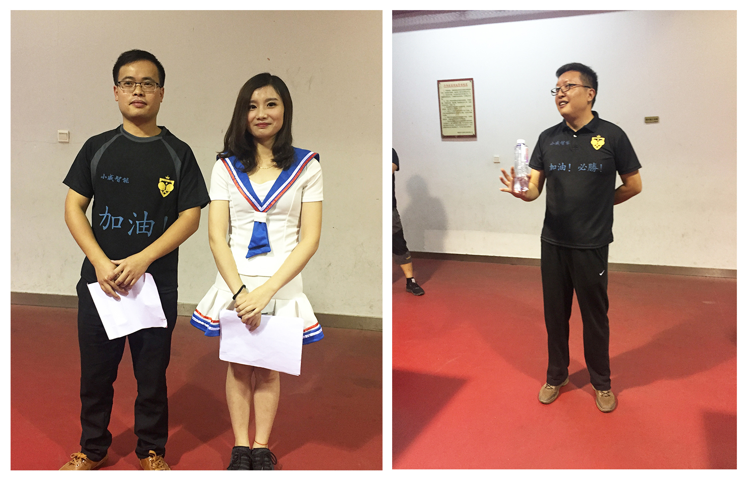 本次比赛的主持人——来自欣威视通的章龙潭和陈树蓉,俊男靓女的完美组合。欣威视通大BOSS也进行了震撼人心的演讲,“小威智能杯”乒乓球争霸赛正式拉开帷幕。