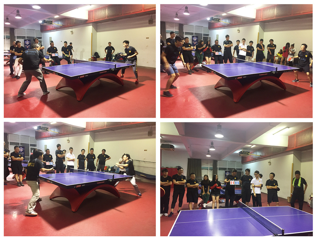比赛全程进行一个下午,采取淘汰制。分为小组赛、复活赛,半决赛和最后的决赛。选手们都以饱满的热情和高度的积极性全身心的投入到此次比赛中,充分发挥了敢打敢拼的进取精神。发球挥拍、正手反手,场上的运动选手个个投入专注,场边的观众们也不断为他们呐喊助威,整场比赛在激情又不失愉悦的气氛中进行。