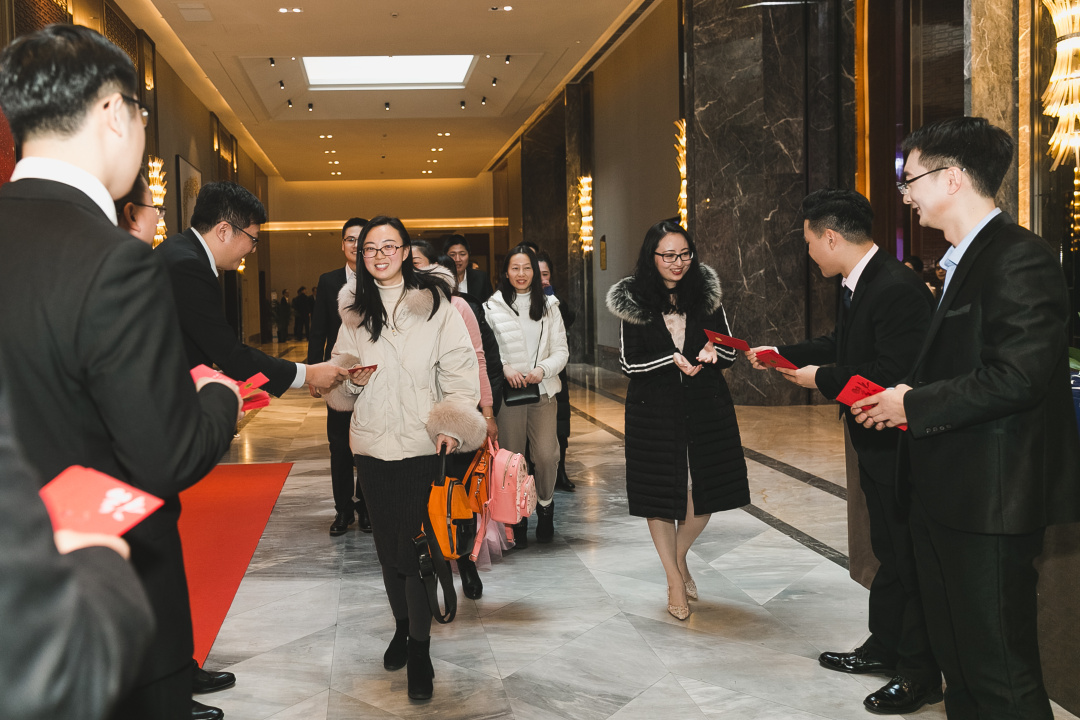 下午15点,特邀嘉宾、欣威员工及员工家属陆续进场。大家身着礼服西装,签字、拍照、领红包!