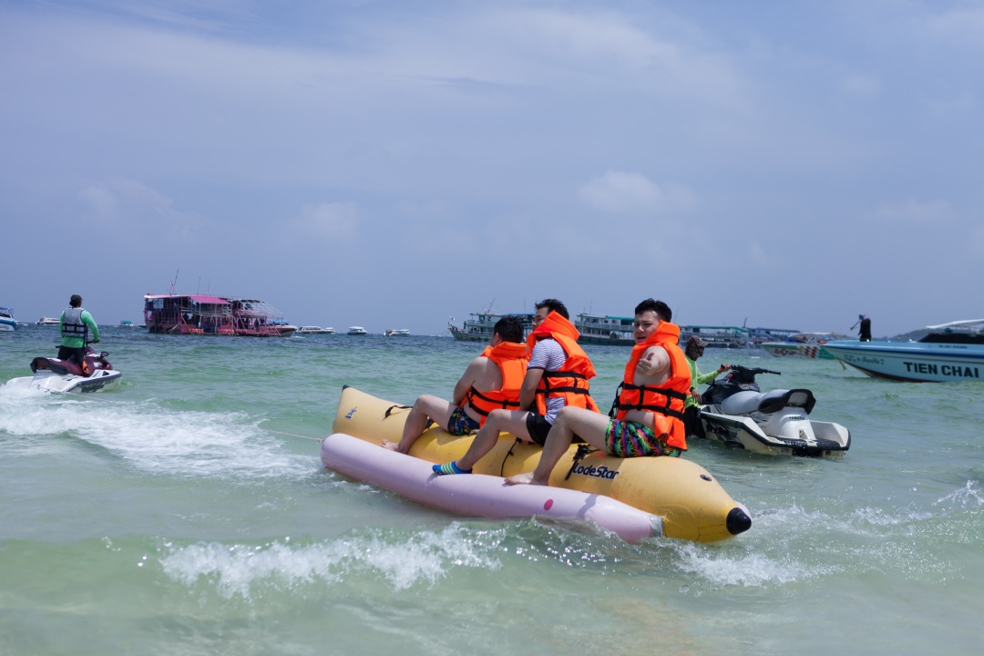 小伙伴们都玩嗨了,香蕉船、水上摩托车、海底漫步、海鲜大餐,即使只是躺在海滩边的躺椅上日光浴也是一种别样的享受。