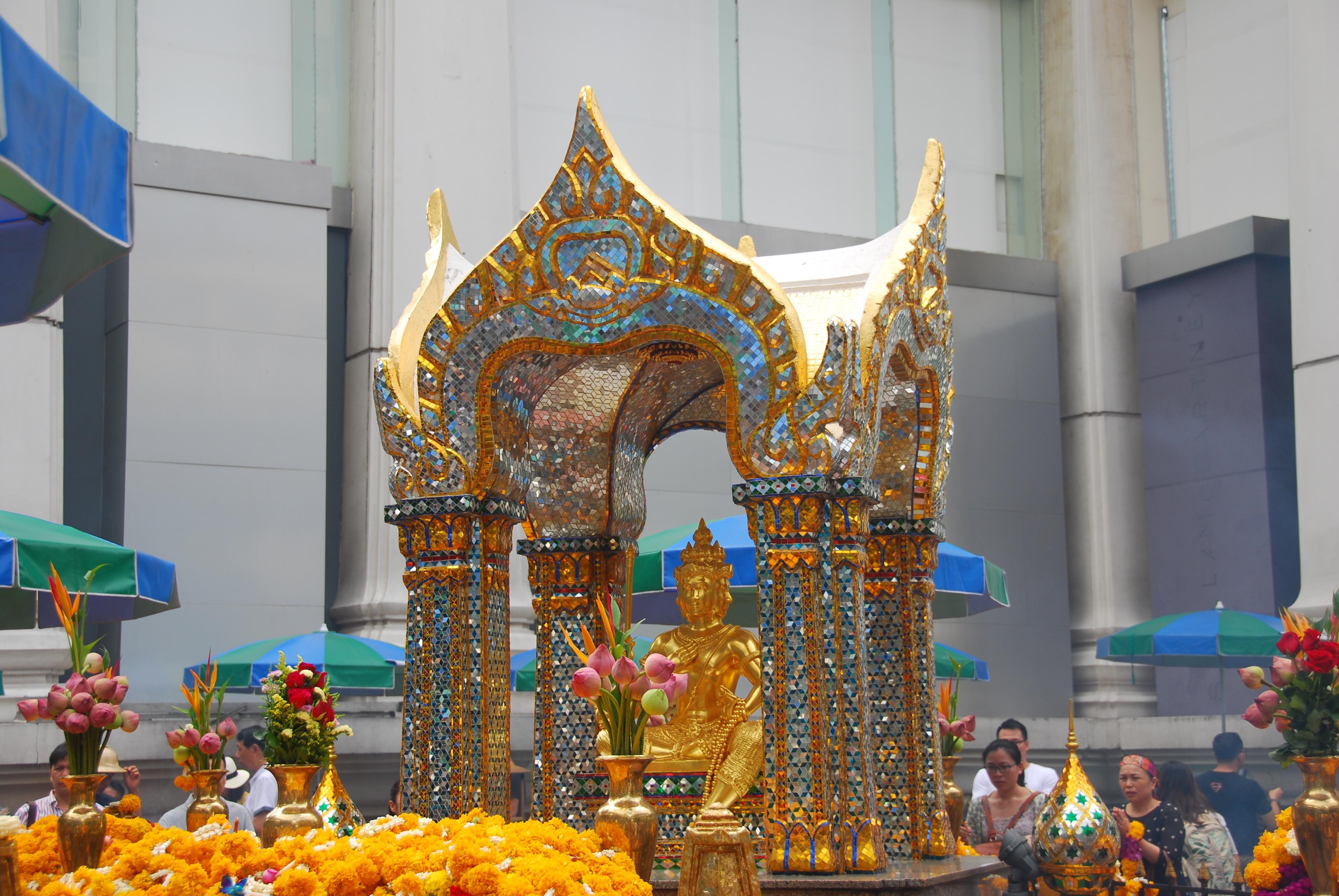 泰国的寺庙很多,供奉的佛像也是数不胜数。四面佛是当地最具特色的佛像,其四面朝向东南西北,分别代表健康、事业、爱情与财运,人称“有求必应”佛。