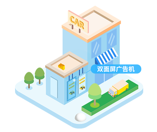 放置于橱窗区域,一块主板驱动两块屏幕,支持双屏异显、双屏同显,对外屏幕多图层动态海报吸引顾客注意、勾起消费欲望;对内屏幕补充展示车辆或活动信息。