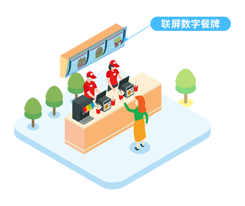 通过多种显示终端,打通业务链路,帮助连锁餐饮标准化管理,提升客户体验的同时,达到高效售卖、坪效提升、客户黏性提高的目的。